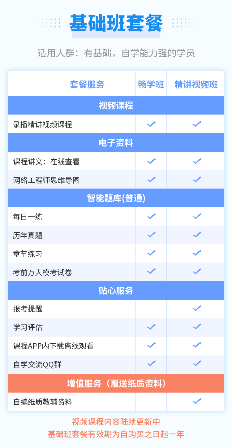 包含精講視頻課程、紙質(zhì)內(nèi)部輔導(dǎo)資料、智能題庫隨時刷題、考前模擬試卷、電子資料輔助學(xué)習(xí)等。