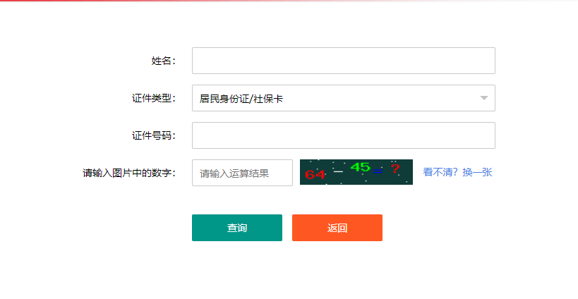 第四步:進入準考證打印頁面后,填寫個人信息,輸入姓名,選擇證件類型,輸入證件號碼,輸入圖片中的運算結(jié)果,最后點擊查詢即可。